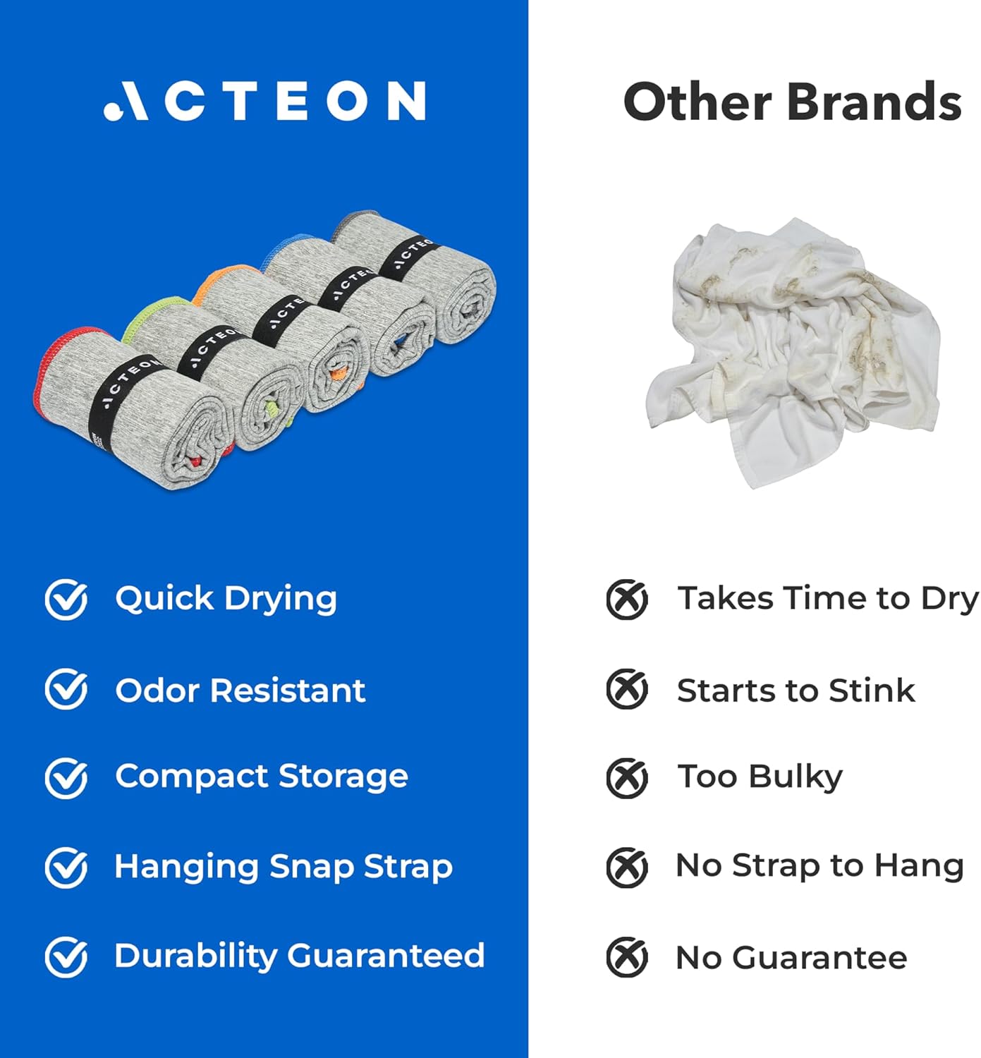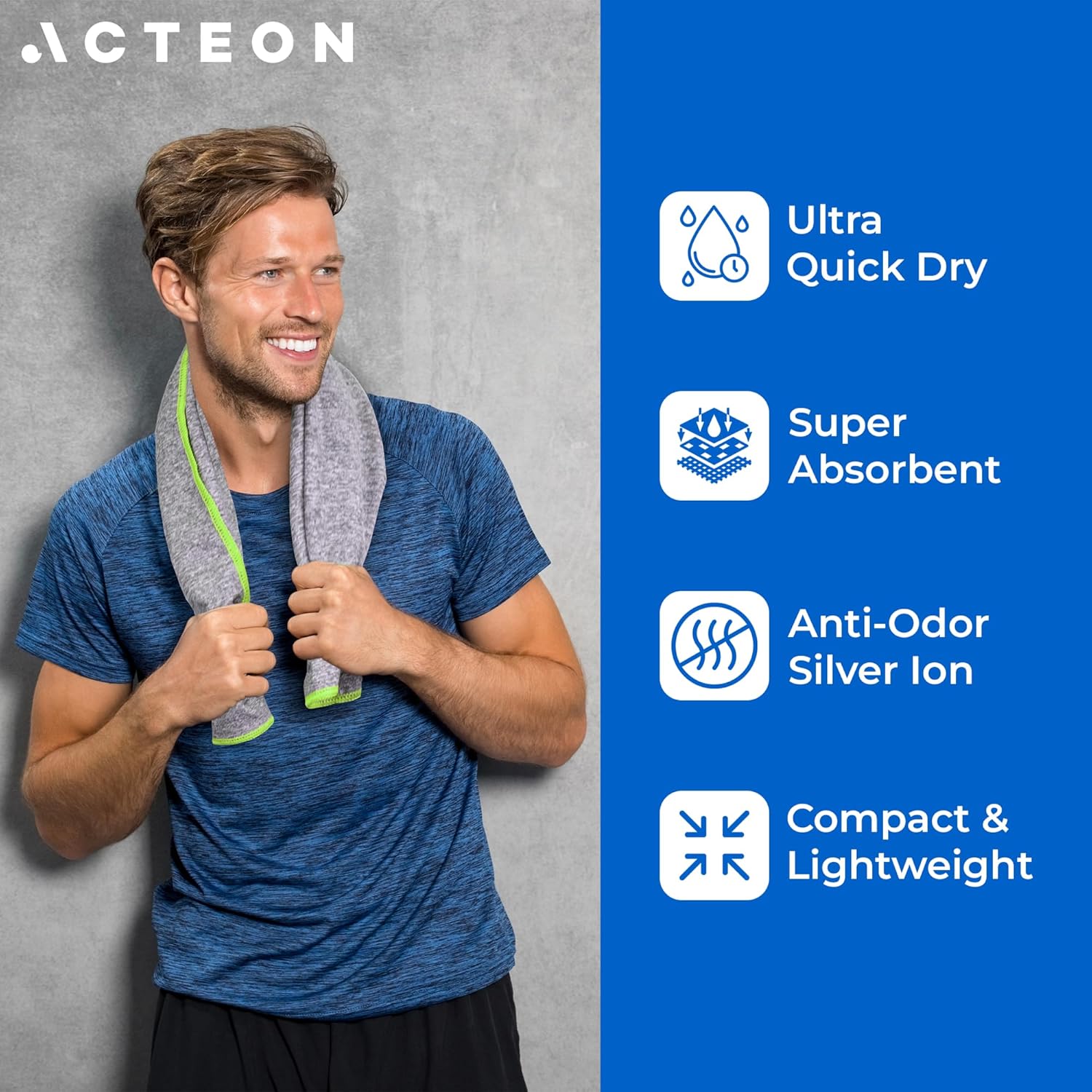 Acteon Microfiber Gymnasium Towels 5 Pack, Fast Dry Silver ION Odor-Free Sweat Towel,…