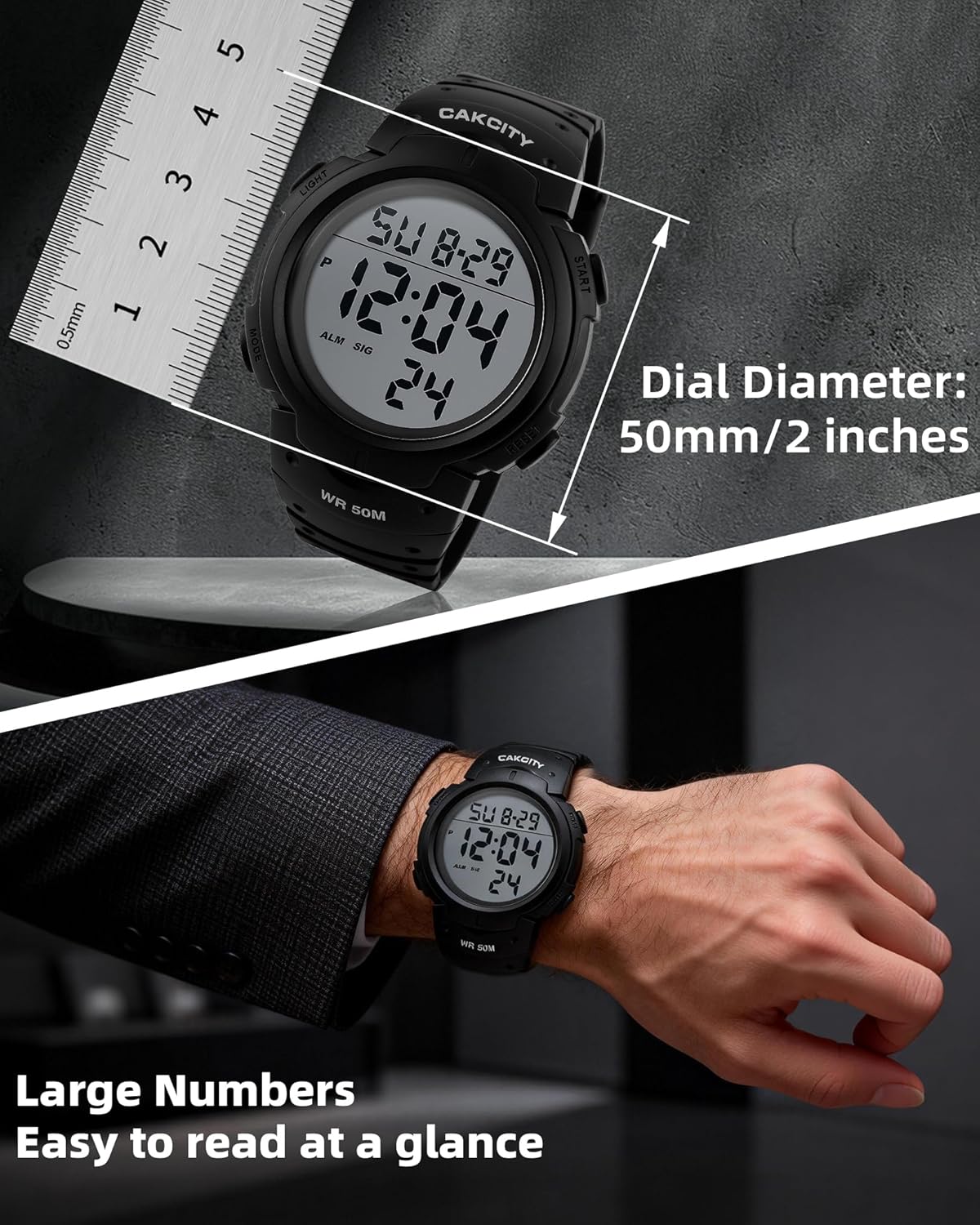 CakCity Mens Digital Watch Navy Waterproof Outside Giant Face Sports activities Watches…