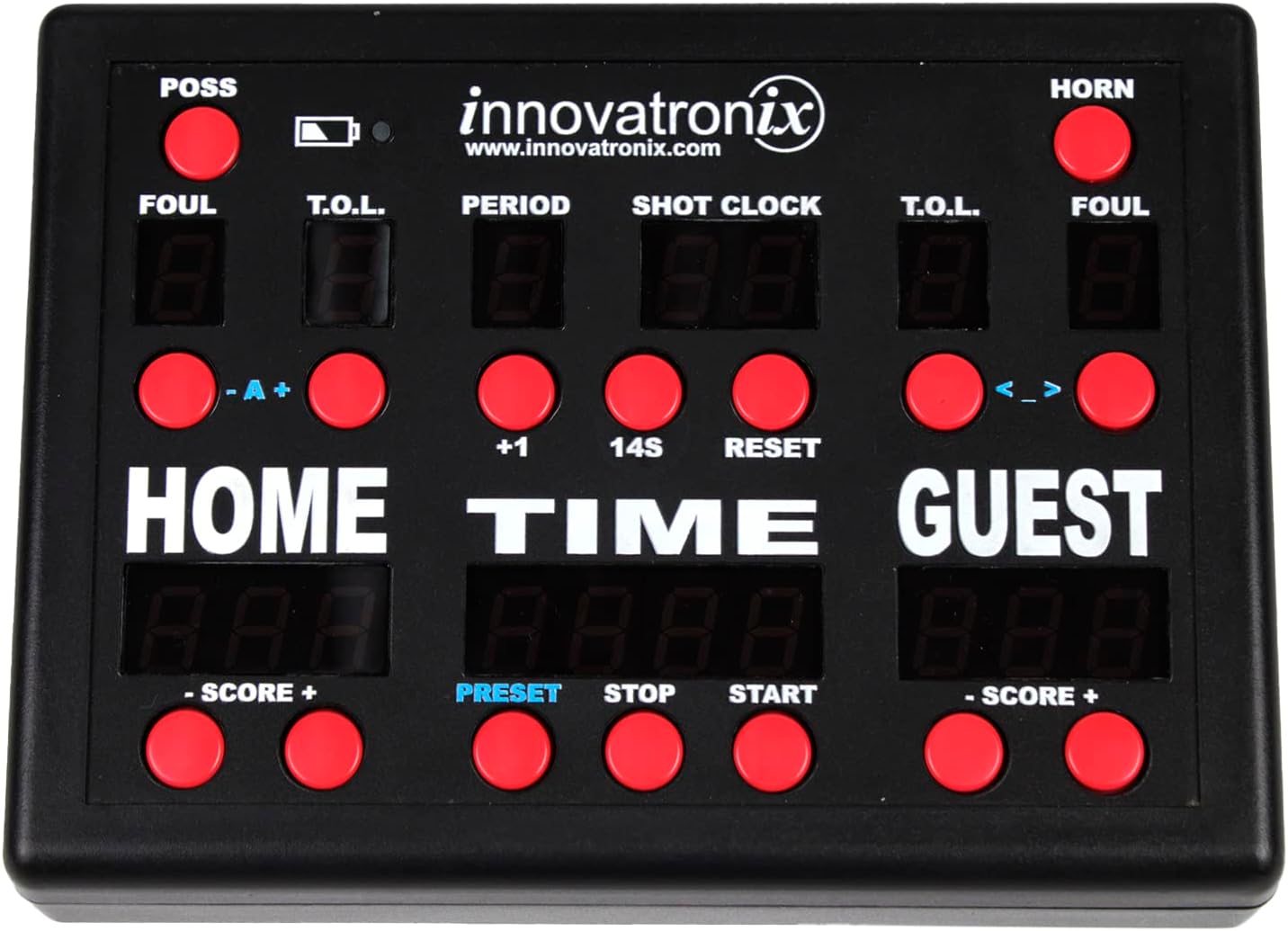 Horn Button – Can manually activate for foul, time-out, begin/finish of recreation, or different vital bulletins.