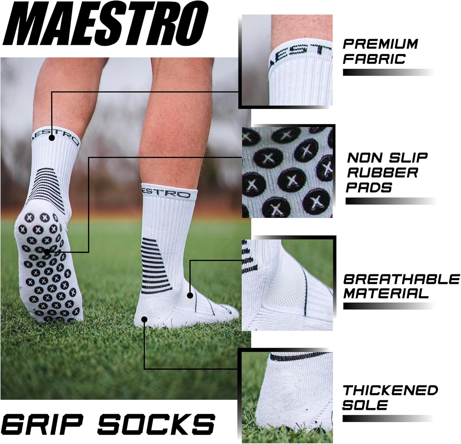Maestro Soccer Grip Socks for Males and Ladies with Non-Slip Pads – Anti-Slip Socks…